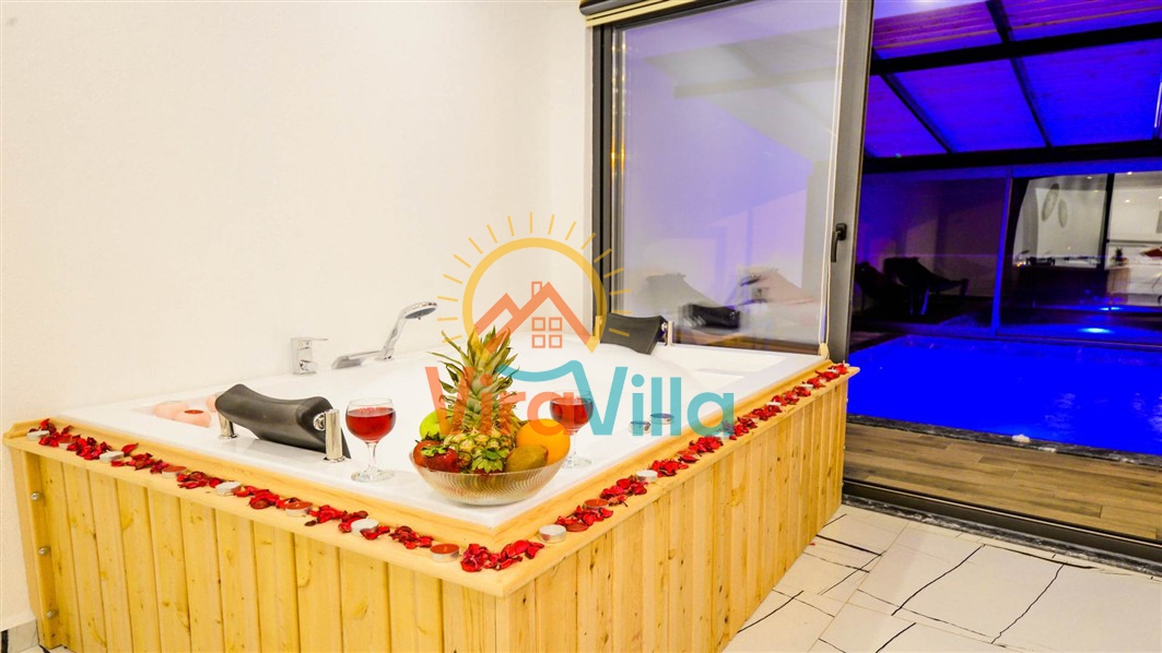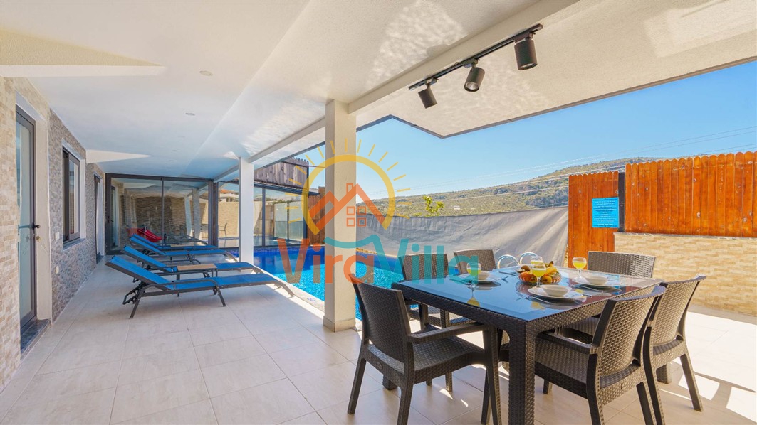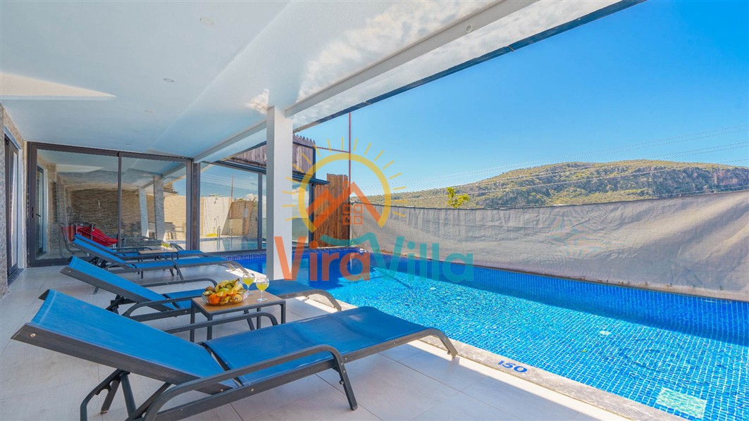 Villa Yaz 3 Kalkan Ulugöl bölgesinde yer almaktadır. Villamız 2 yatak odası ile 4 kişilik konaklama kapasitesine sahiptir. Villamızın havuz alanı korunaklı yapıya sahiptir. Balayı çiftlerimiz ve muhafazakar ailelerimiz için ideal tatil villalarımız arasında yer almaktadır. Villa Yaz 3 denize ve merkeze yakın konumda yer almaktadır. Aracınız ile kısa sürede ulaşım sağlayabilirsiniz. Villamızda yer alan kapalı ısıtmalı havuz ile yıl boyu tatil sizleri beklemektedir.