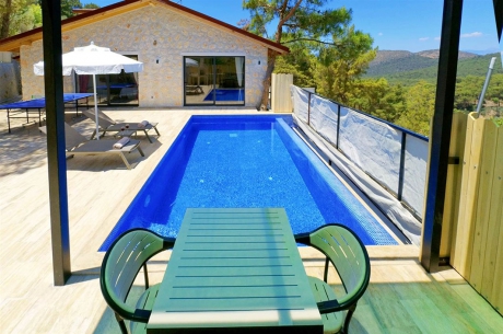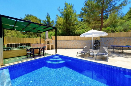 Kalkan'ın Akbel bölgesinde bulunan villamız, 1 yatak odası ile 2 kişilik konaklama kapasitesine sahiptir. Villa Zeyno 3, doğa içerisinde yer alan muhafazakar balayı villalarımız arasındadır. Villamızın havuz kısmı korunaklı yapıya sahiptir. Villa Zeyno 3, Kalkan merkeze ve plaja yakın konumda yer almaktadır ve aracınız ile kısa sürede ulaşım sağlayabilirsiniz. Villamıza giden son 200 metrelik yol beton kaplamadır.